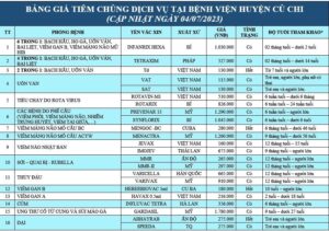 Dịch vụ tiêm ngừa – Bệnh viện huyện Củ Chi