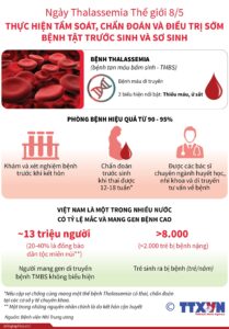 Thalassemia hay còn gọi là bệnh tan máu bẩm sinh là do tan máu di truyền. Ngày Thalassemia thế giới được tổ chức vào ngày...