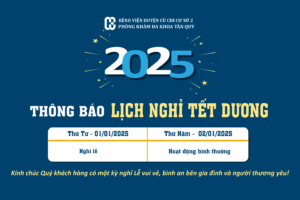 Bệnh viện huyện Củ Chi cơ sở 2 (Phòng khám đa khoa Tân Quy) trân trọng thông báo lịch nghỉ Tết Dương lịch năm 2025...