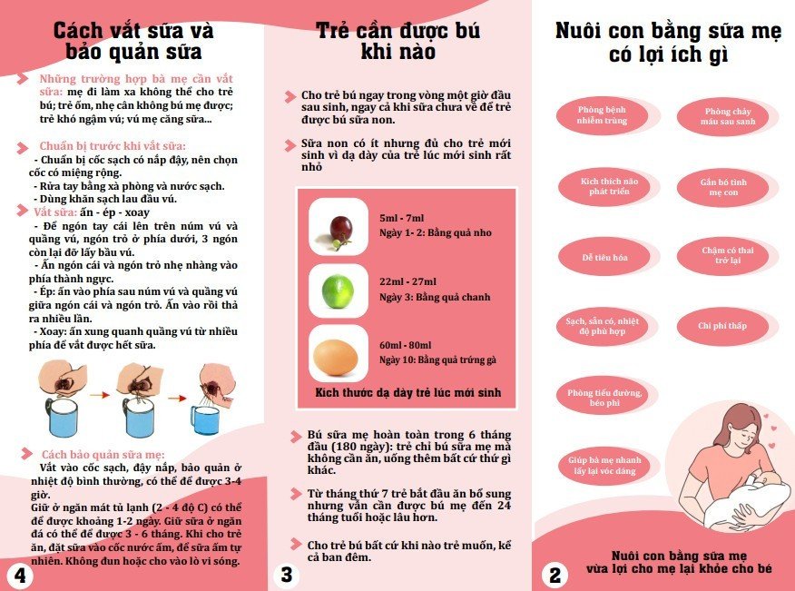 Hướng dẫn cho các bà mẹ cách cho trẻ bú và duy trì nguồn sữa mẹ;