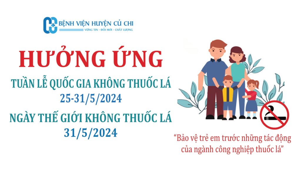 Hưởng ứng ngày thế giới không thuốc lá, Bệnh viện huyện Củ Chi kêu gọi mọi người nói không với thuốc lá, hãy chọn thực phẩm, đừng chọn thuốc lá. Vì một cộng đồng không khói thuốc! Vì sức khỏe của bạn và những người thân yêu! Hãy bỏ thuốc lá ngay hôm nay!