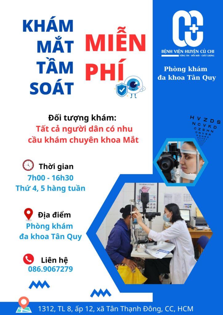 Bệnh viện huyện Củ Chi cơ sở 2 – Phòng khám Đa khoa Tân Quy tổ chức chương trình “Khám mắt tầm soát miễn phí” cho tất cả người dân có nhu cầu khám chuyên khoa Mắt.