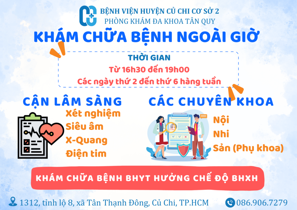 Bệnh viện Củ Chi cơ sở 2 – Phòng khám đa khoa Tân Quy luôn đồng hành cùng bạn trong hành trình chăm sóc sức khỏe!