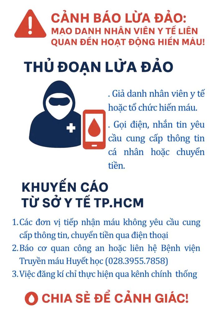 2. Nếu nhận cuộc gọi nghi ngờ, hãy báo ngay cơ quan công an hoặc liên hệ Bệnh viện Truyền máu Huyết học (028.3955.7858) để xác minh.