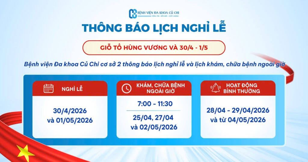 THÔNG BÁO LỊCH LÀM VIỆC TRONG DỊP LỄ TẠI BỆNH VIỆN ĐA KHOA CỦ CHI CƠ SỞ 2