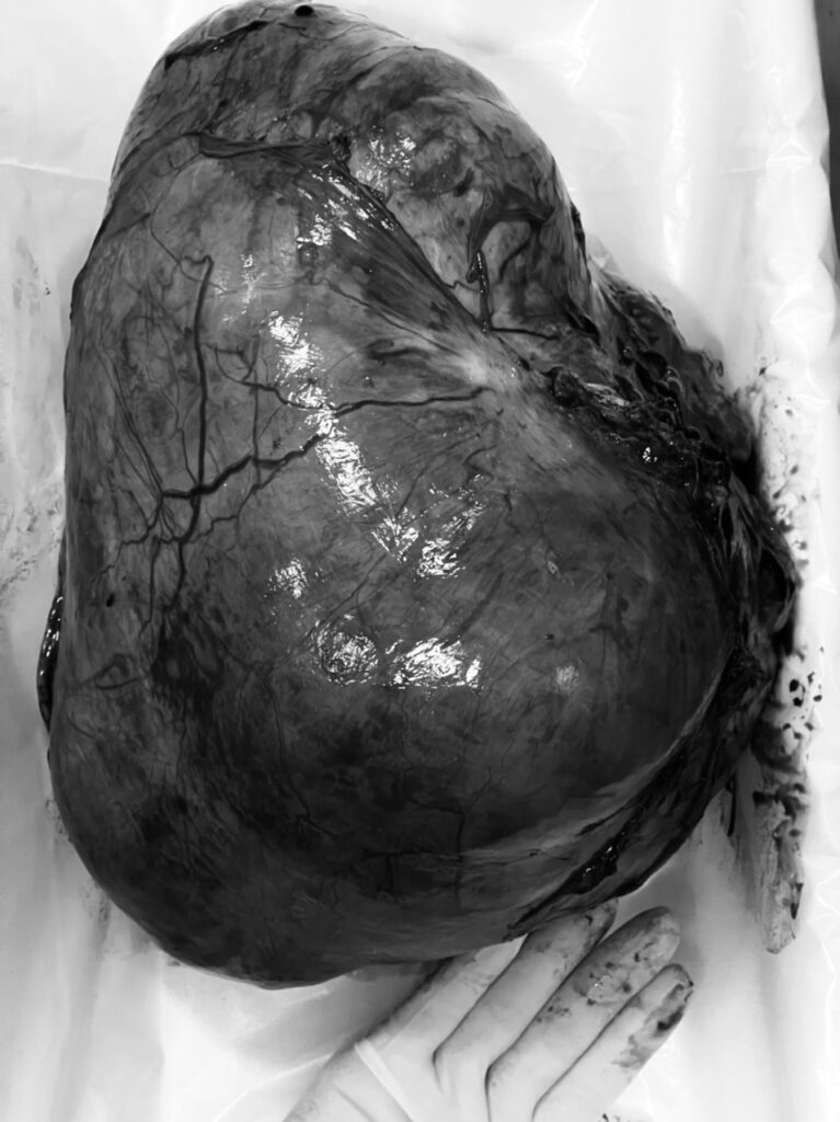 BS.CKI Nguyễn Đức Lĩnh, Trưởng khoa Phụ Sản, phẫu thuật viên chính cho biết: “Khối u xơ quá lớn đã làm biến dạng toàn bộ cấu trúc giải phẫu ở người bệnh. Ê-kíp phẫu thuật đã phải tỉ mỉ bóc tách, cắt khối u cẩn thận để tránh làm tổn thương các cấu trúc xung quanh như thận, niệu quản, bàng quang và ruột, hạn chế tối đa mất máu, giúp người bệnh phục hồi nhanh sau mổ. Những trường hợp trên, nếu không can thiệp kịp thời, khối u lớn sẽ chèn ép lên các cơ quan khác, gây hậu quả nghiêm trọng về sức khỏe”.