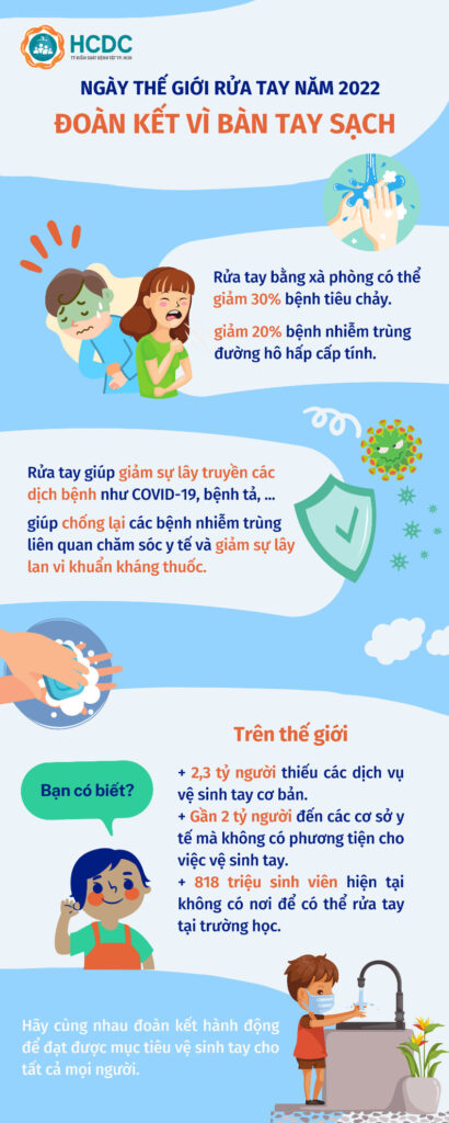 ✊✊✊Chính vì thế, chủ đề Ngày Thế giới rửa tay năm 2022 là “Đoàn kết vì bàn tay sạch”. Thông qua đó, cho thấy việc hành động chung và hợp tác là điều cần thiết để đưa ra các chiến lược vệ sinh tay thành công và bền vững. Chủ đề của năm nay kêu gọi chính phủ, các nhà tài trợ, các doanh nghiệp, tổ chức, nhà nghiên cứu và những người ủng hộ cùng nhau đoàn kết hành động để đạt được mục tiêu vệ sinh tay cho tất cả mọi người.